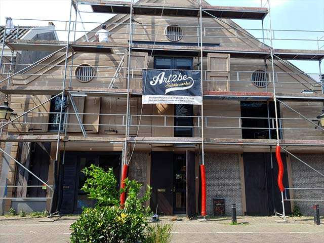 Wij verzorgen al uw buitenschilderwerk met oog voor het karakter van het pand. We kunnen adviseren over (historisch) kleurgebruik en gebruiken uitsluitend kwaliteitsproducten. Afhankelijk van de werkzaamheden hebben we een eigen steiger of werken we samen met een steigerbouwer voor het plaatsen van een steiger die aan alle veiligheidseisen voldoet.